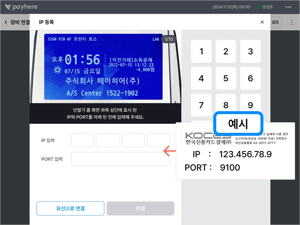 ⑧ IP · PORT 번호가 적힌 영수증 출력