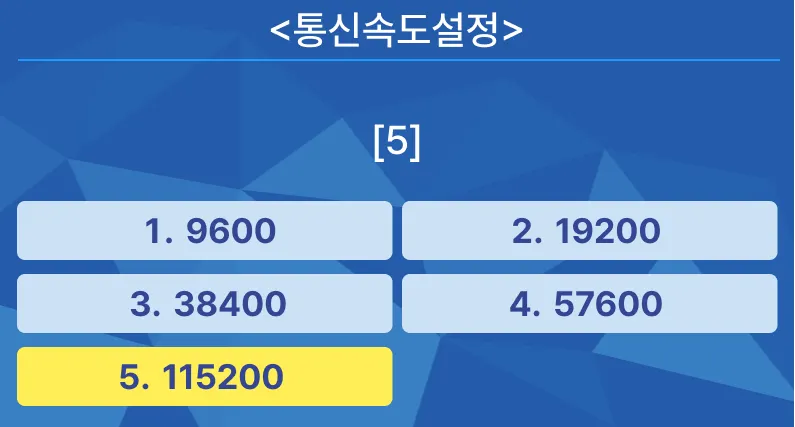 단말기 키패드를 이용하여 PC 통신 속도 설정을 완료해 주세요.