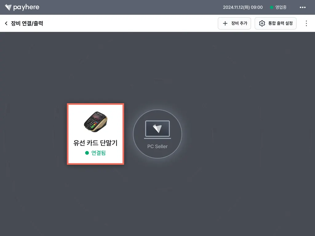 2) 연결 대기 상태인 [유선 카드 단말기]를 눌러주세요.
