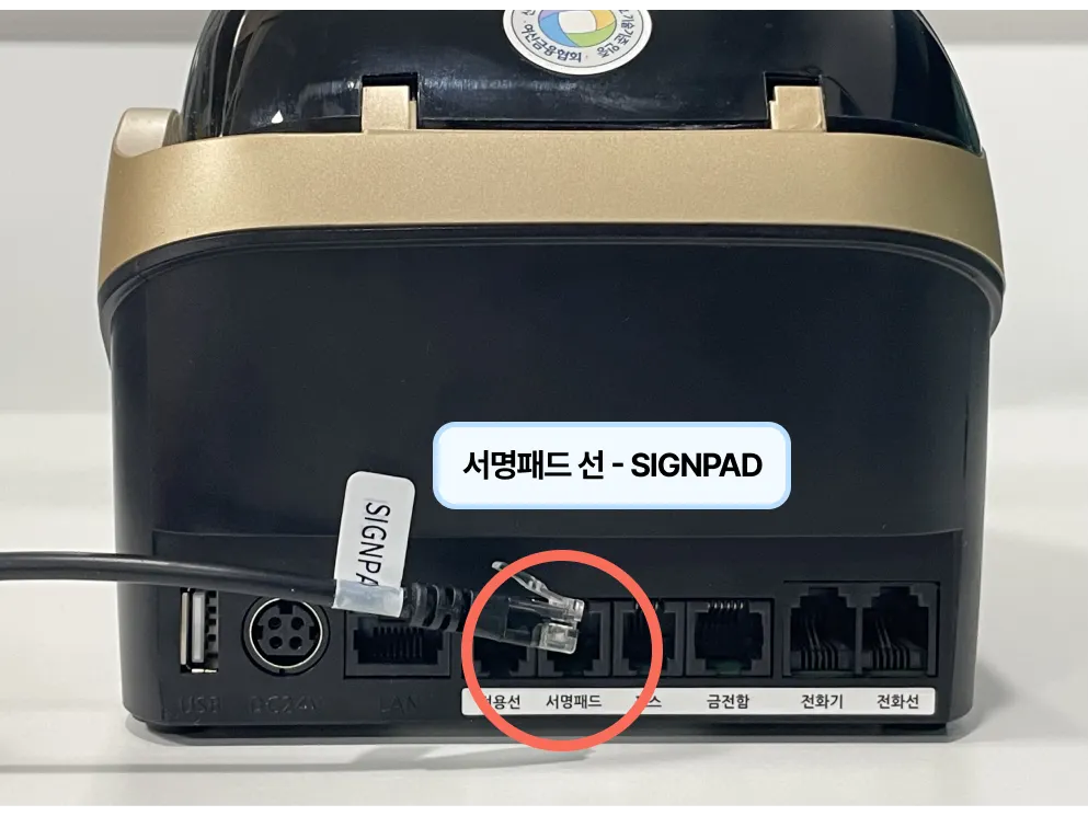 서명패드 : 선 양쪽을 각각 단말기와 서명패드 뒷면에 연결해 주세요.