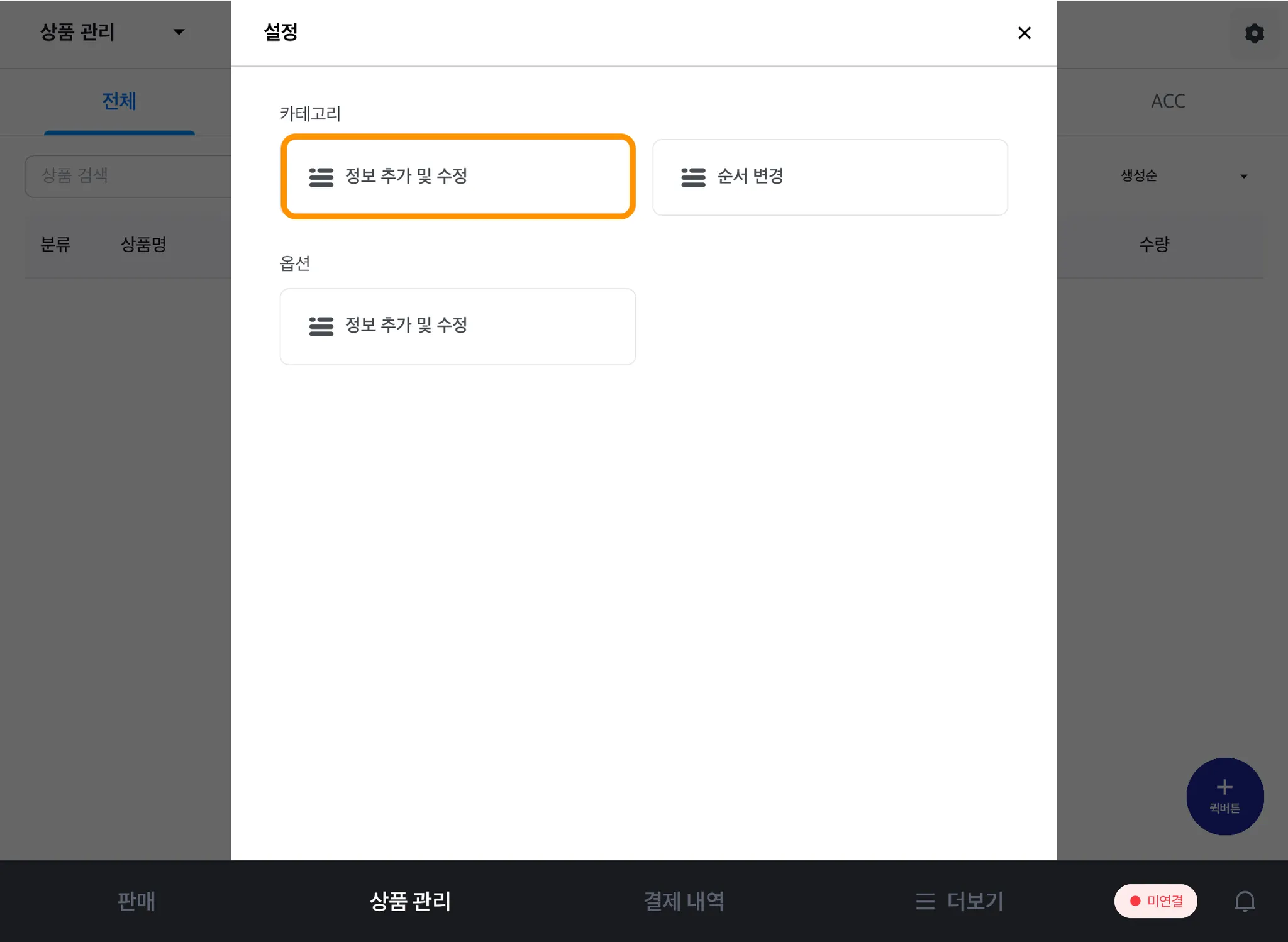 2) 카테고리 → [정보 추가 및 수정]을 눌러주세요.