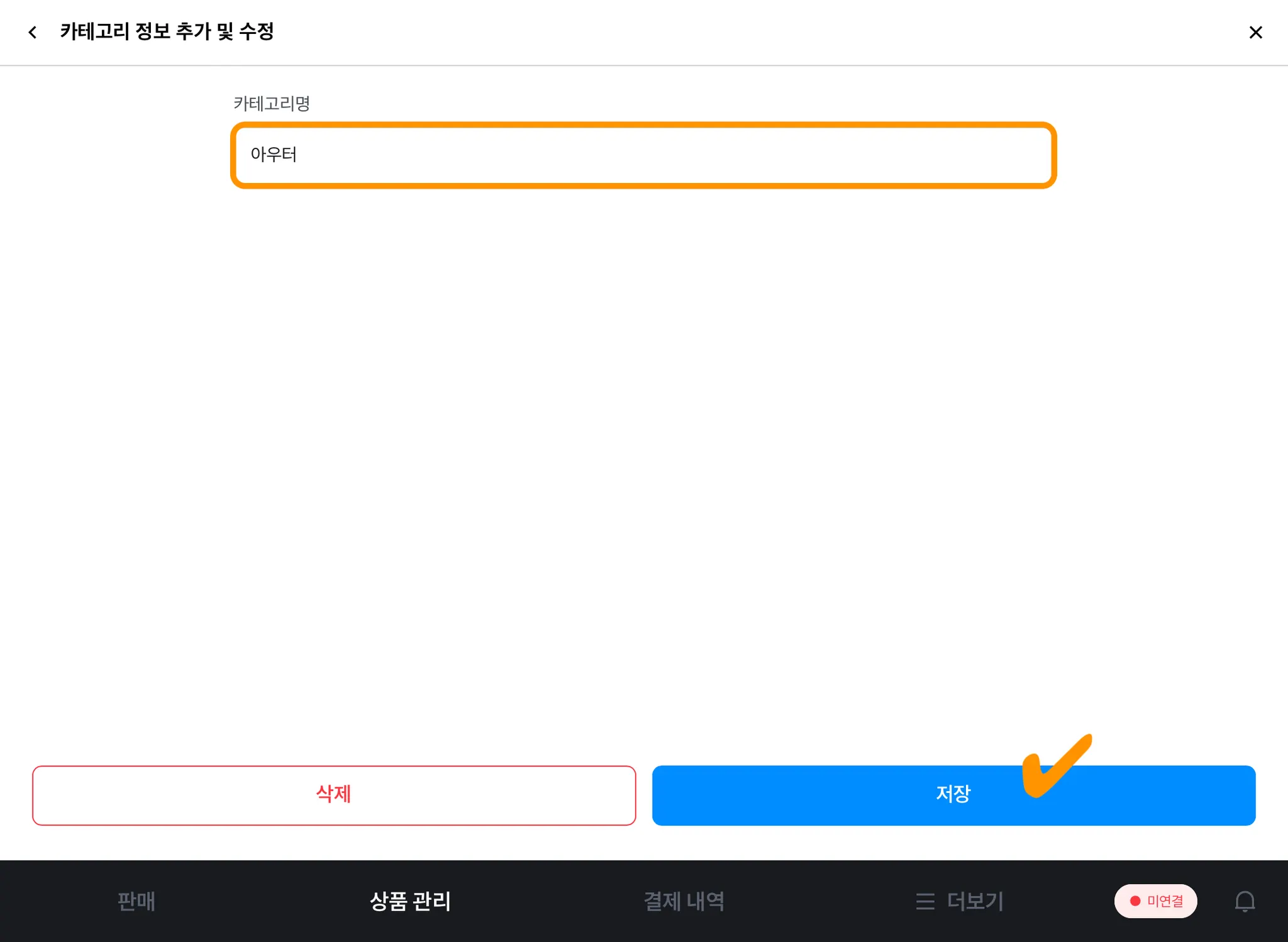3) 카테고리 추가 → 카테고리명을 입력하고 [저장]을 눌러주세요.