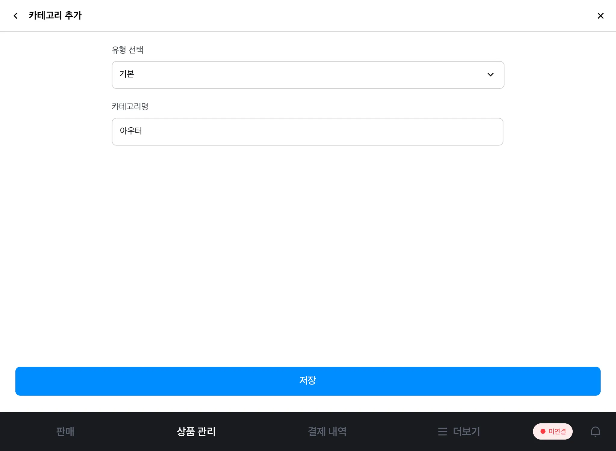 2) [+ 추가] → 카테고리명을 입력하고 [저장]을 눌러주세요.