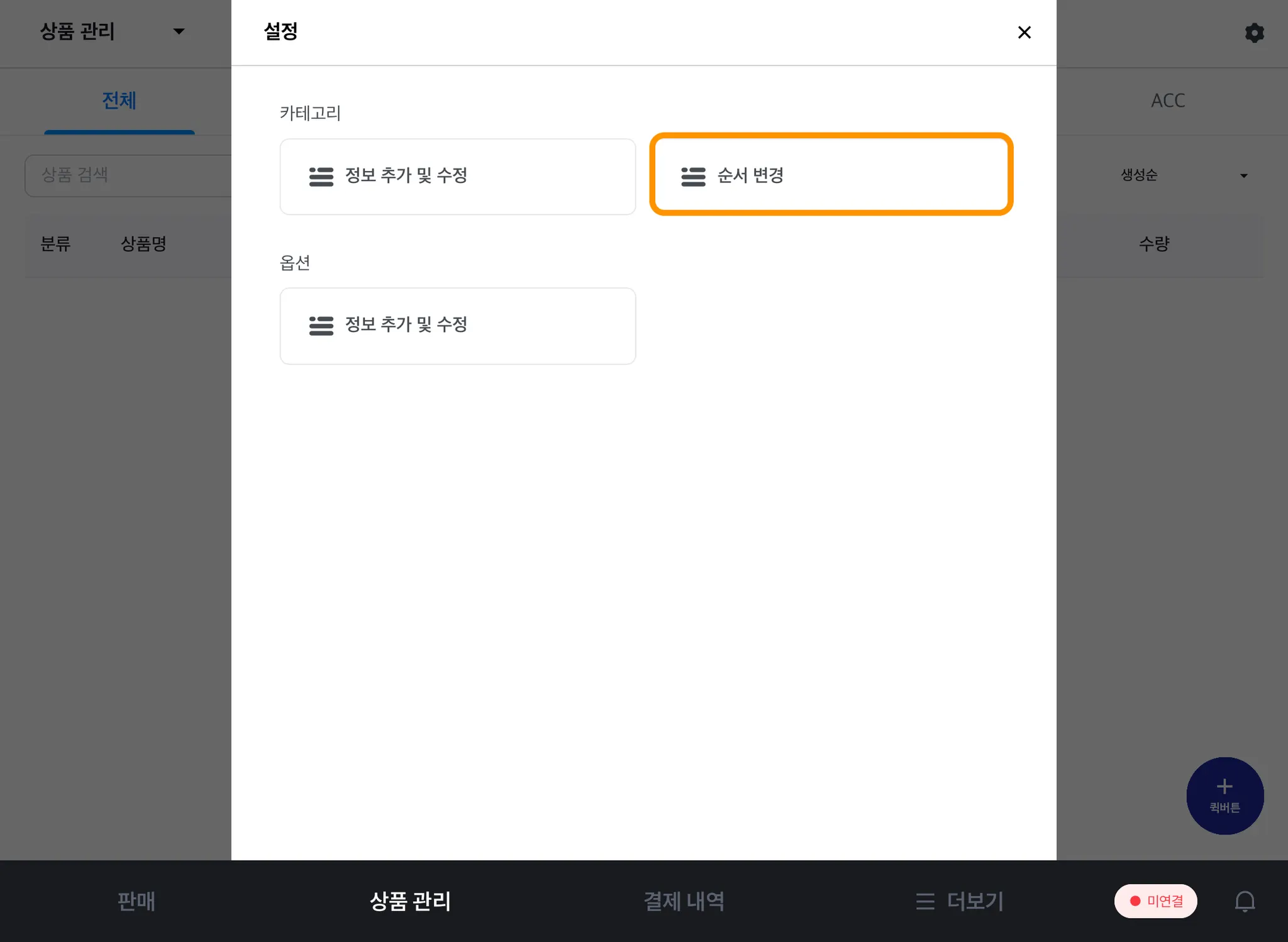 2) 카테고리에서 [순서 변경]을 눌러주세요.