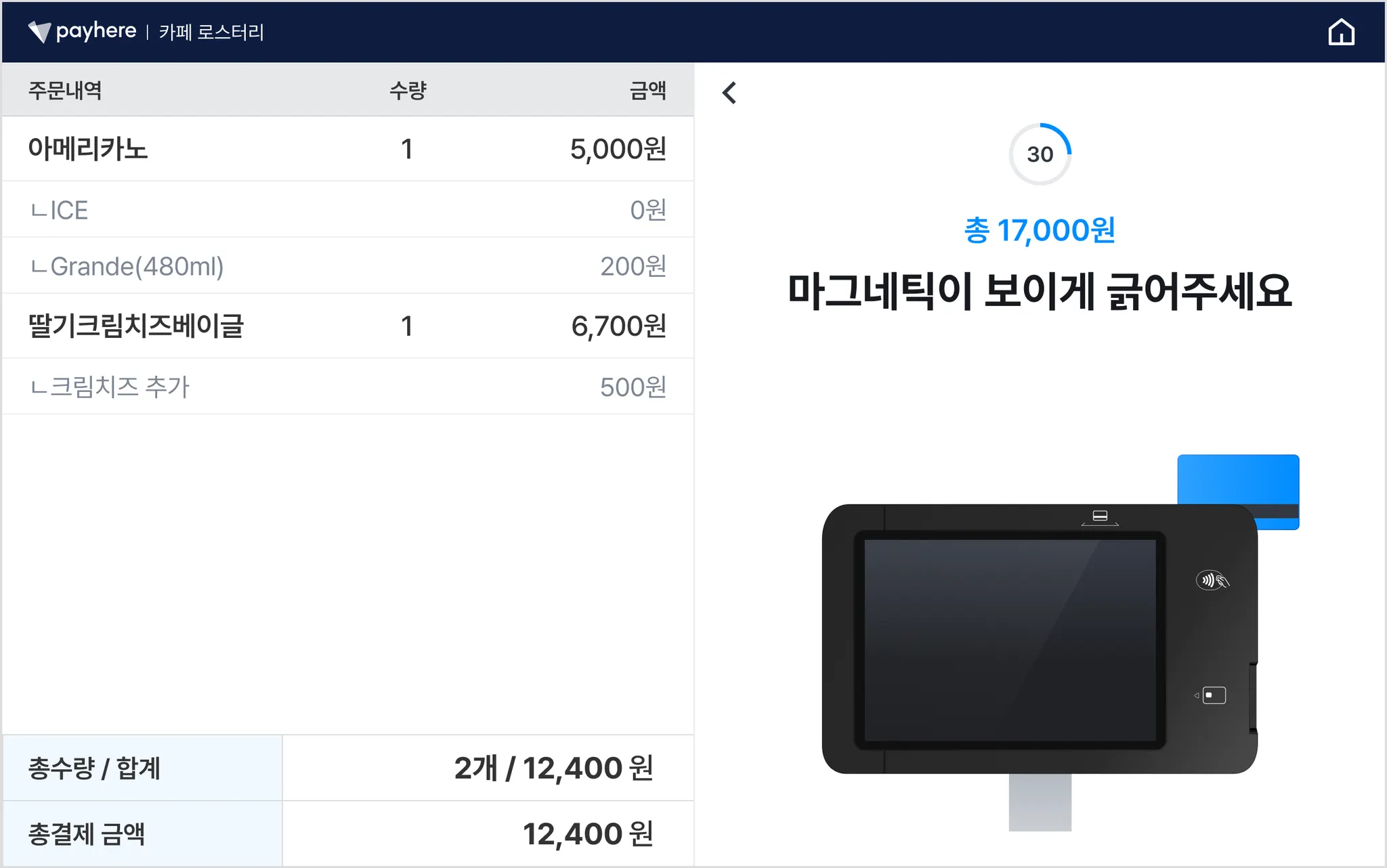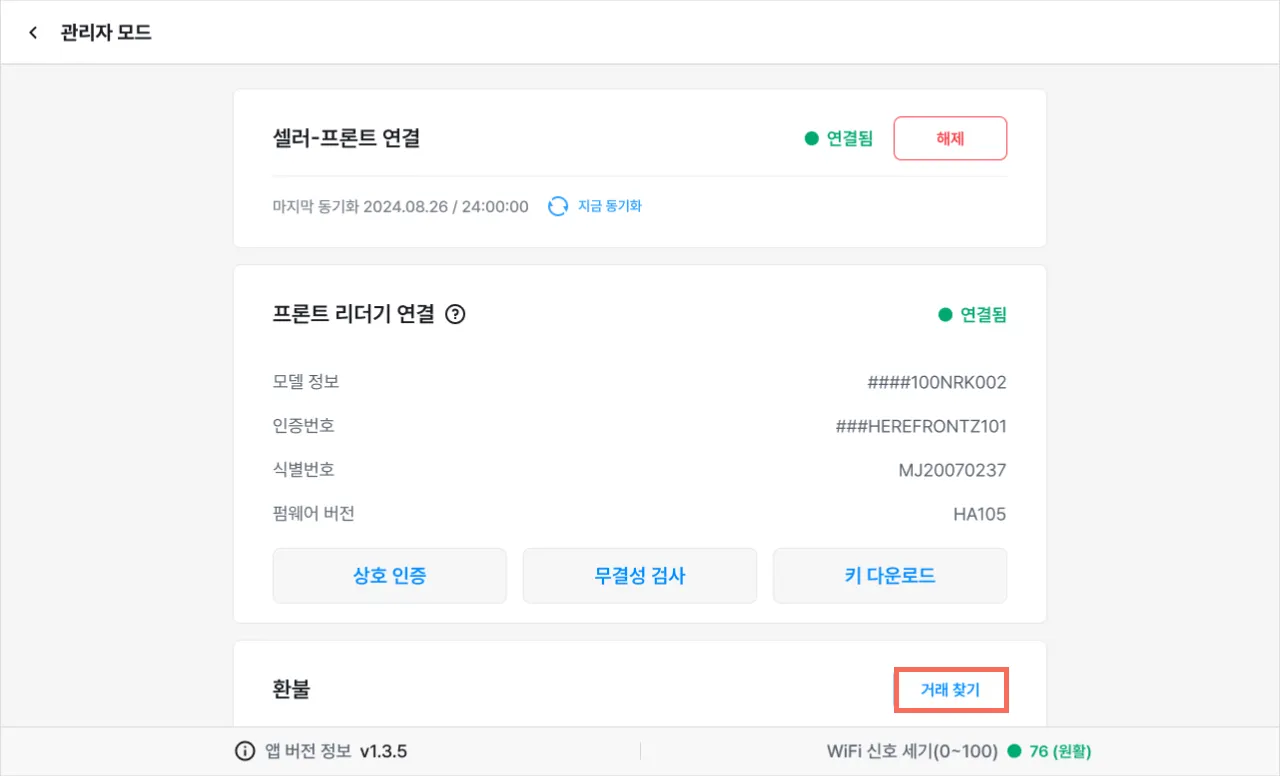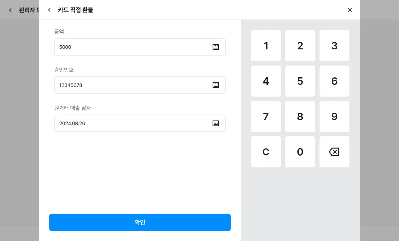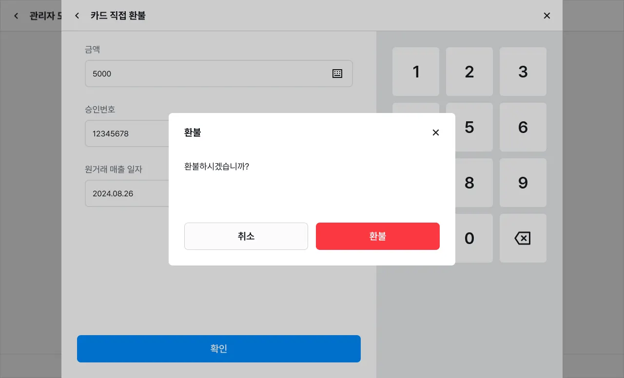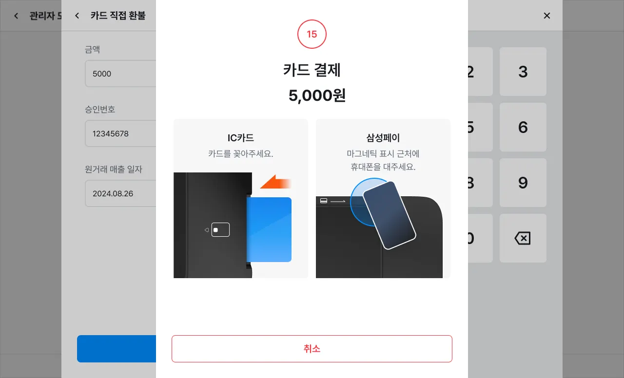 단, 관리자 모드 접속이 필요하여 가급적 환불은 카드 단말기로 처리해 주세요.