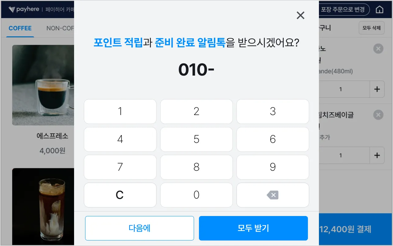 2) 주문 준비 완료 알림톡을 받을 휴대폰 번호를 입력해 주세요.