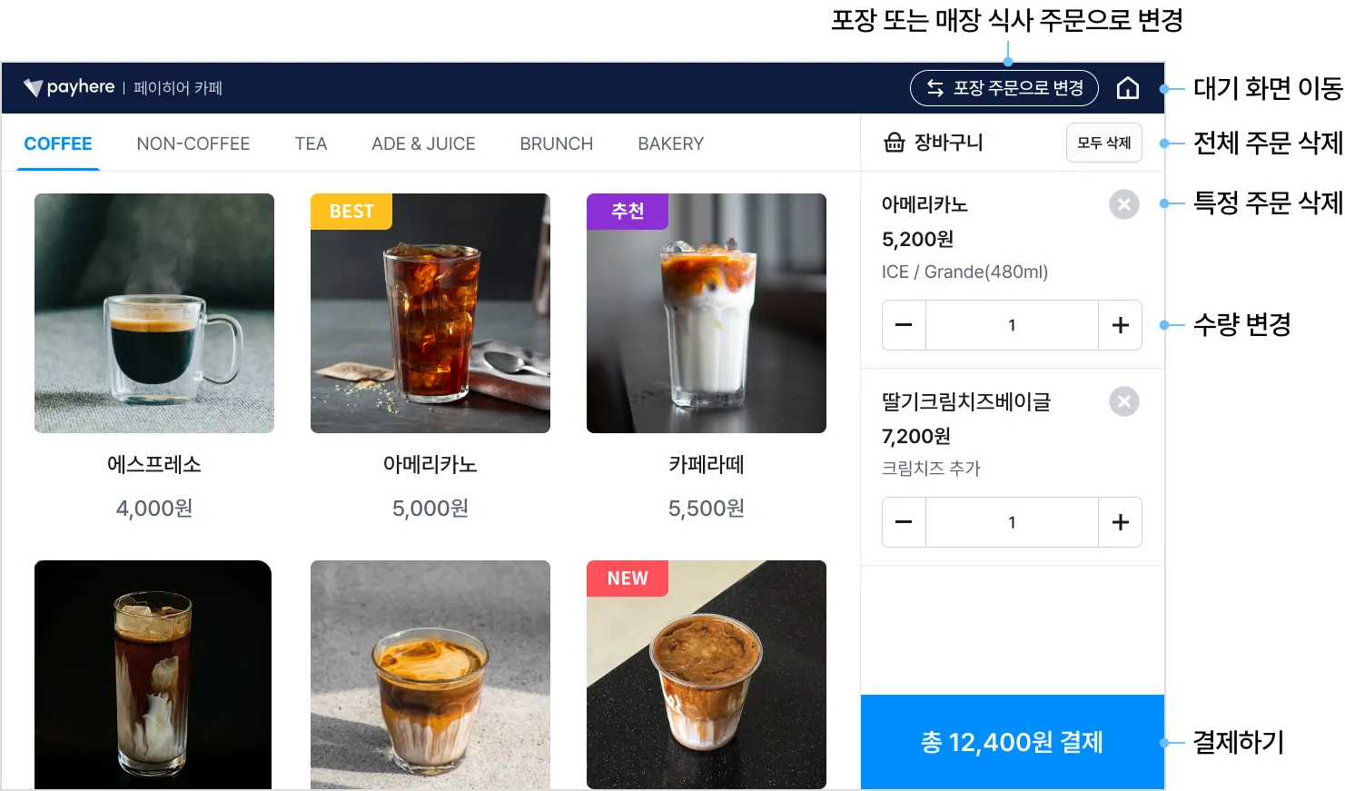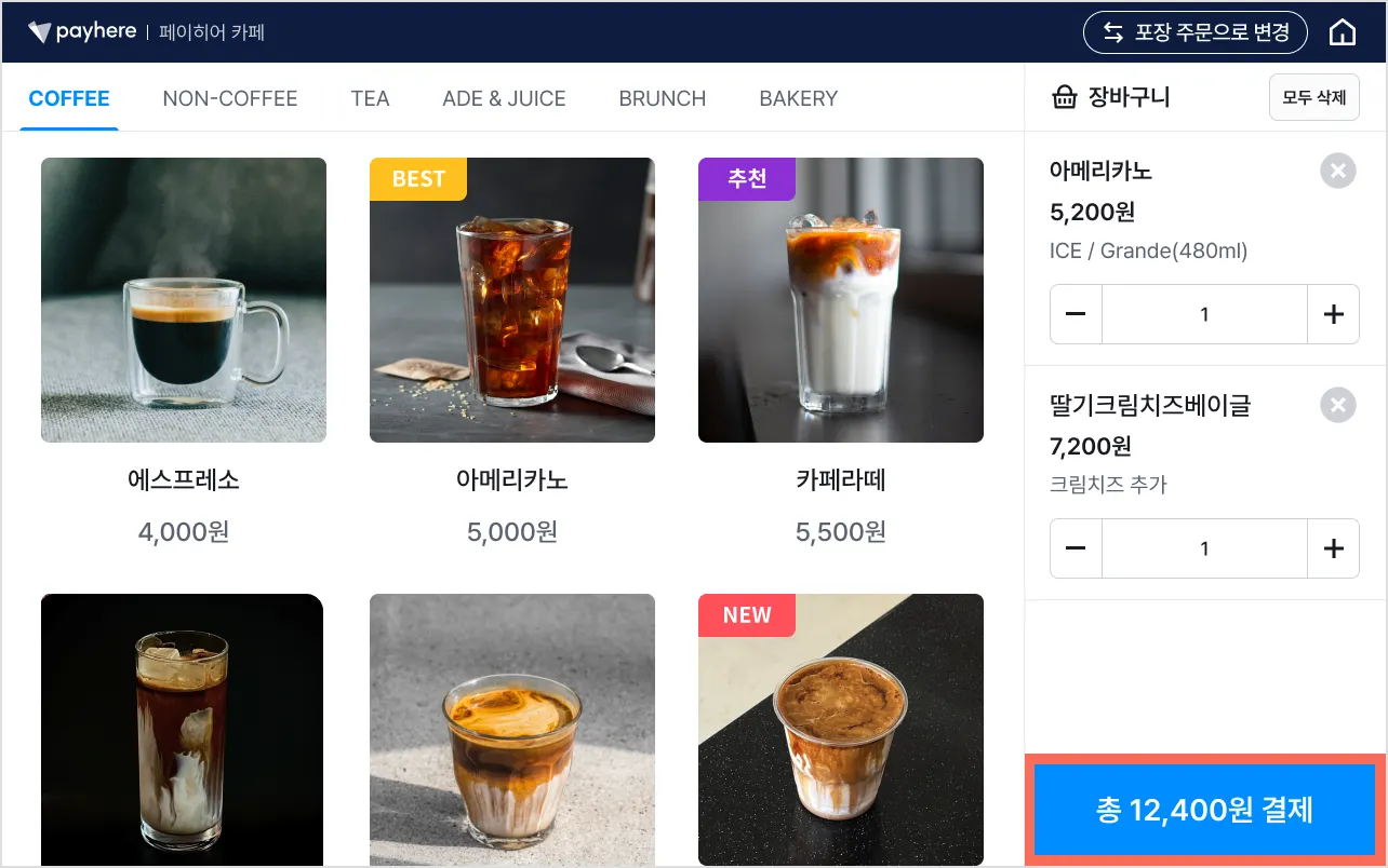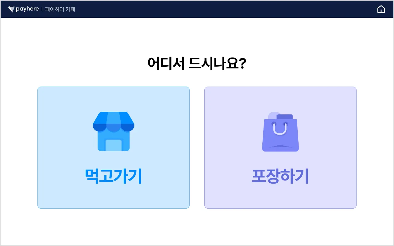 2) [먹고 가기] 또는 [포장하기] 중 원하는 주문 방식을 선택해 주세요.
