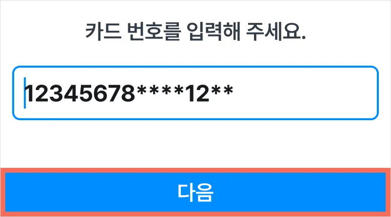 4) 카드 번호 전체 입력 후 [다음]을 눌러주세요.
