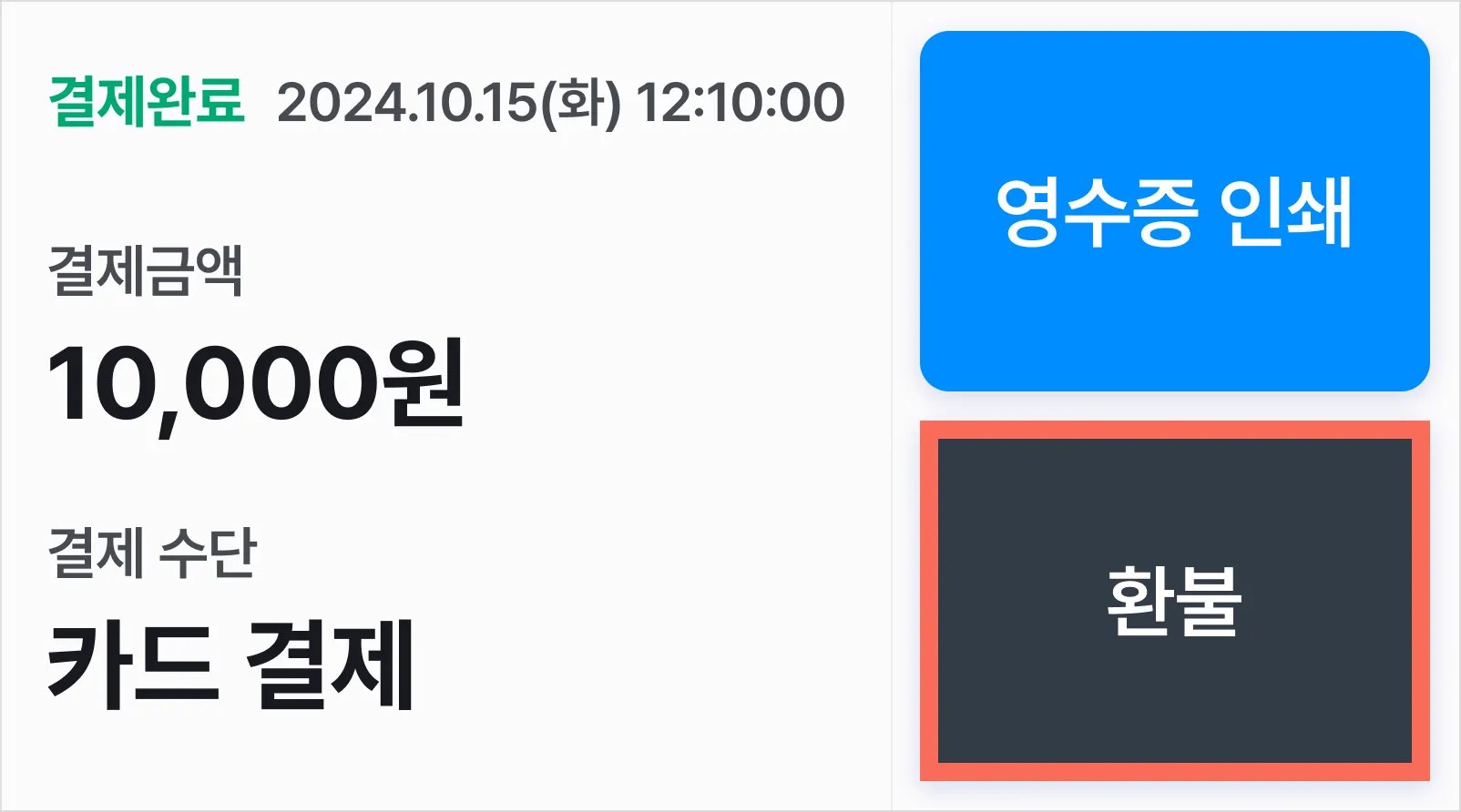‘키인(KEY-IN) 환불’ 체크 해제: 실물 카드를 삽입한 후 취소(환불) 가능