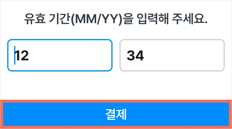 5) 유효 기간을 입력한 후 [결제]를 눌러주세요.