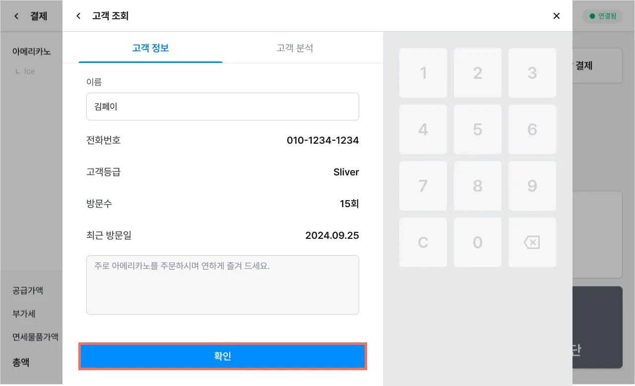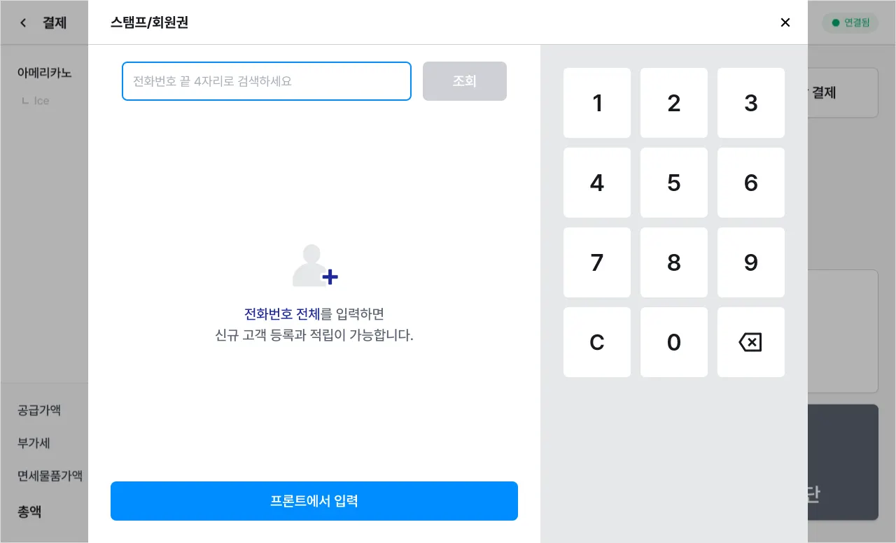 전화번호 전체를 입력하면 신규 고객 등록은 물론 기존 고객을 조회할 수 있어요.