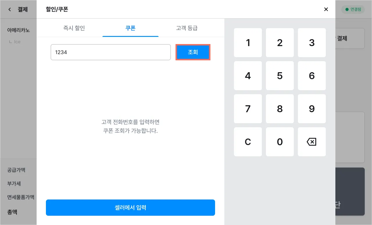 2) [쿠폰]을 누른 다음 고객의 전화번호를 입력해 주세요.