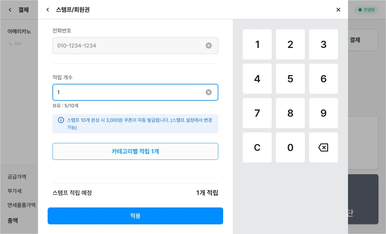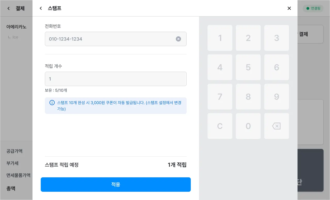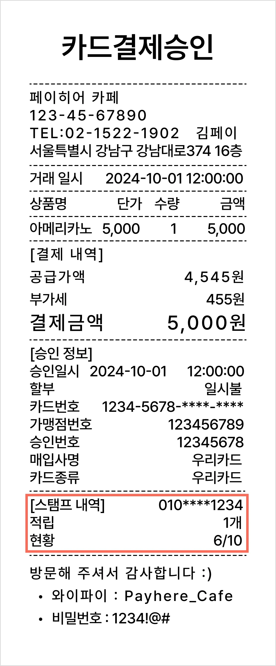 5) 적립될 스탬프 개수를 확인한 후 결제를 완료합니다.