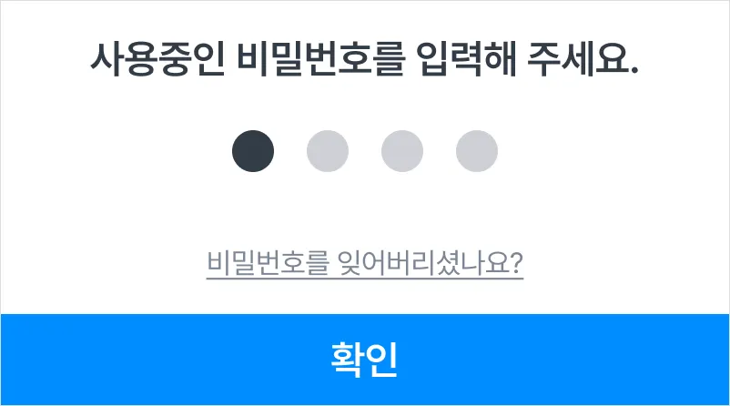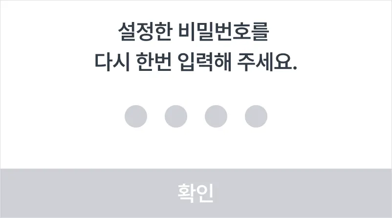 2) 비밀번호로 사용할 숫자 4자리를 입력한 다음 [확인]을 눌러주세요.