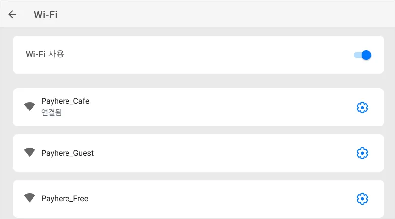 [와이파이]를 누르면 와이파이 연결 및 네트워크 정보를 확인할 수 있어요.