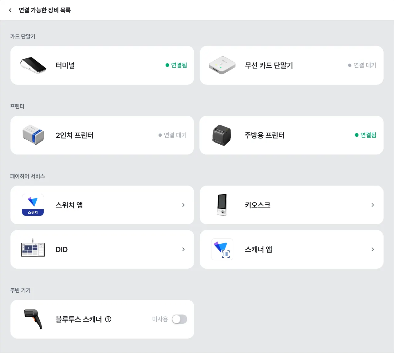 카드 단말기 : 고객센터를 통해 등록된 기기만 노출됩니다.