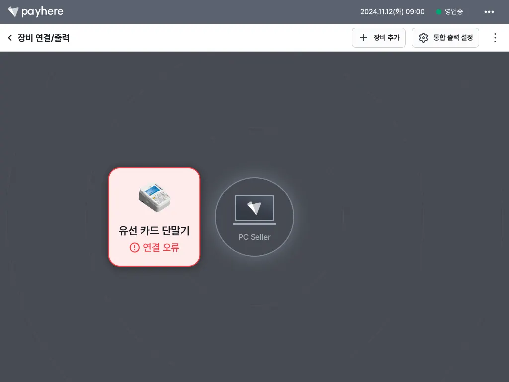 단말기 뒷면 POS 포트에 RJ9 케이블이 잘 연결돼 있는지 확인한 다음, PC 쪽에 연결된 RJ9 케이블 USB를 뺐다가 다시 껴 주세요.