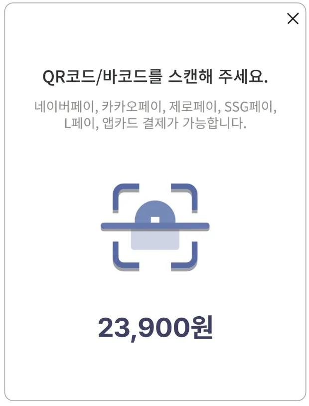 2) QR 코드 인식 화면이 나오면 바코드 스캐너에 QR 코드를 인식합니다.