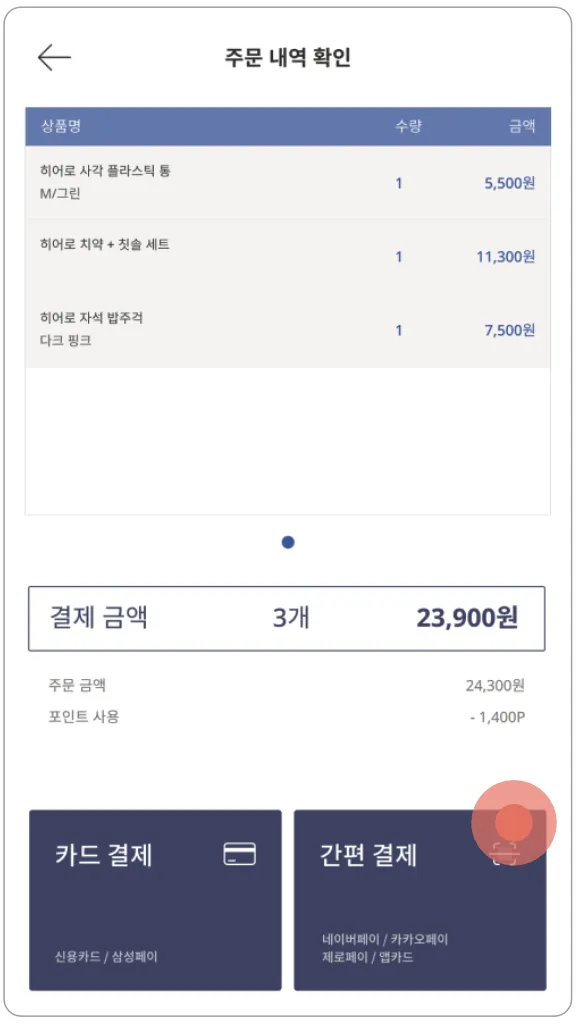1) [간편 결제] 버튼을 누릅니다.