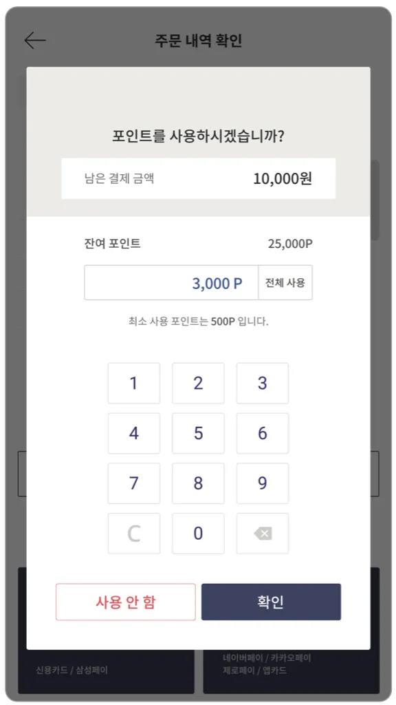 3) 보유한 포인트가 최소 사용 포인트 이상이면 사용이 가능합니다.