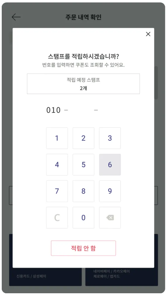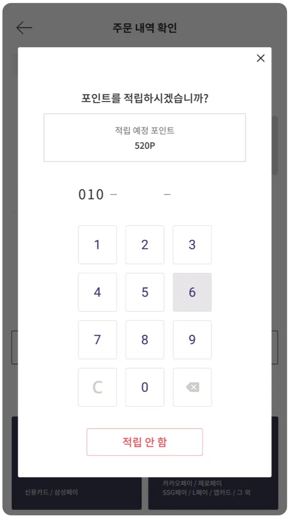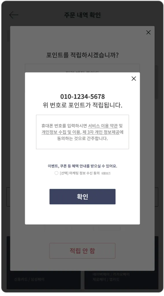 1) 포인트 적립 및 사용을 위한 휴대폰 번호를 입력합니다.
