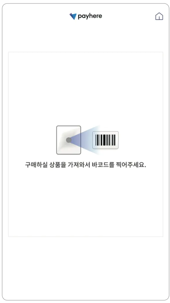 1) 메인 화면에서 구매할 상품의 바코드를 스캔합니다.