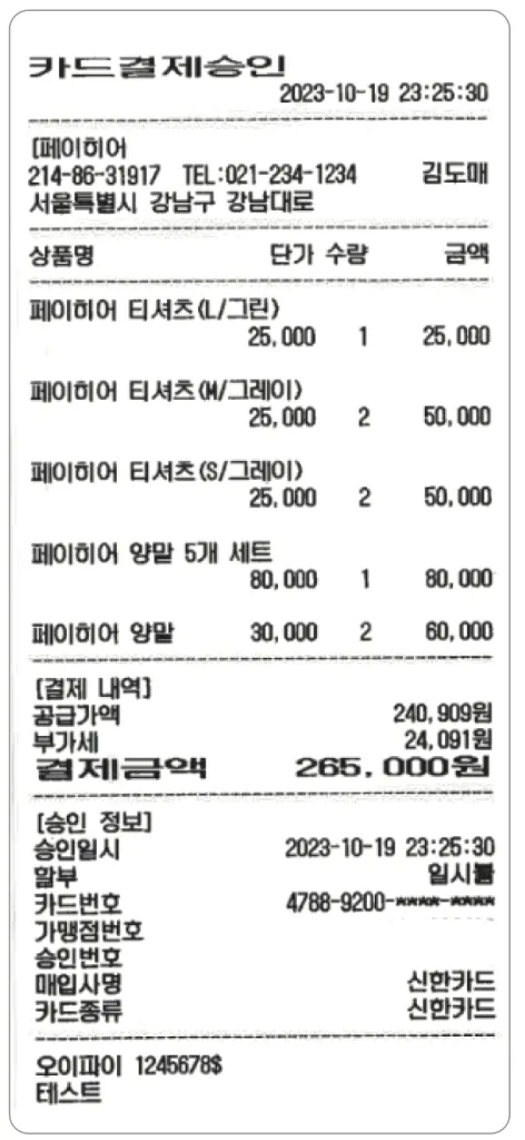 2) 출력된 영수증으로 결제 내역을 확인합니다.
