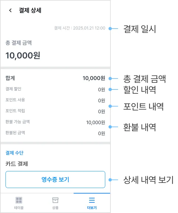 3) 결제 건을 선택하면 상세 내역을 확인할 수 있어요.