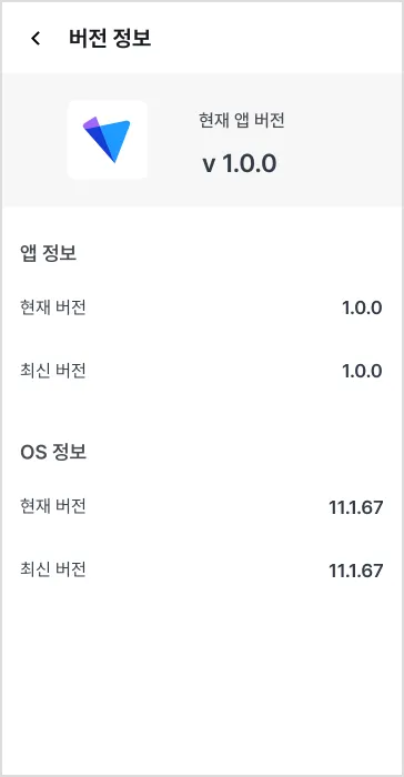 [더보기] 탭에서 [버전 정보 >]를 누르면 앱 및 운영 체제(OS) 버전 정보를 확인할 수 있어요.
