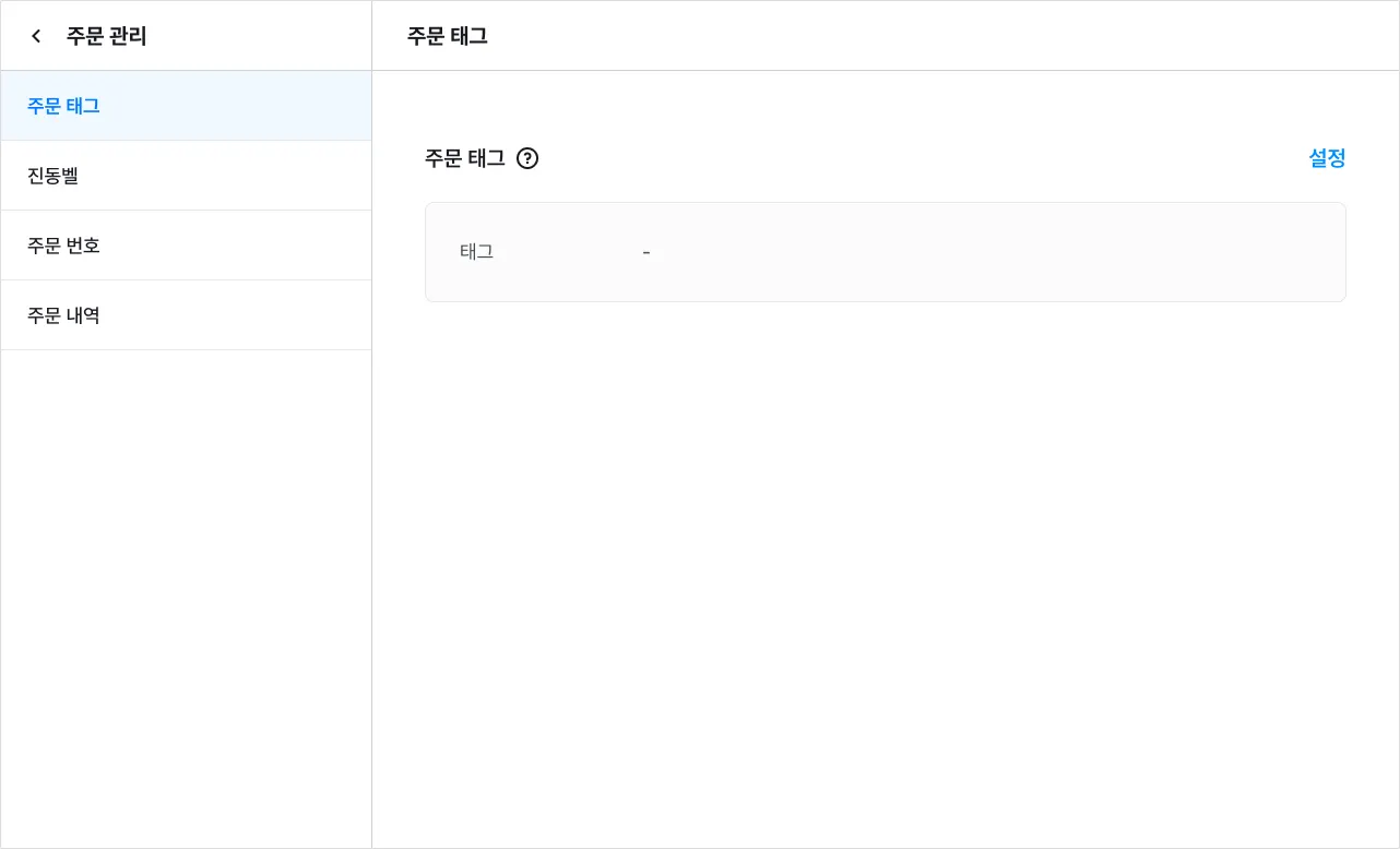 1) [주문 태그]에서 주문 태그 옆 [설정]을 눌러주세요.