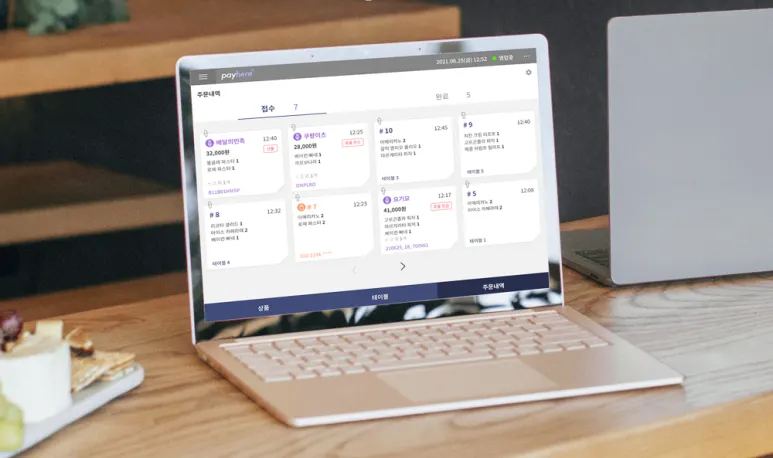 프로그램 연동을 통해 PC와 연결된 유선 카드 단말기 또는 주방용 프린터로 주문서가 출력되며, 주문 내역이 동기화됩니다.