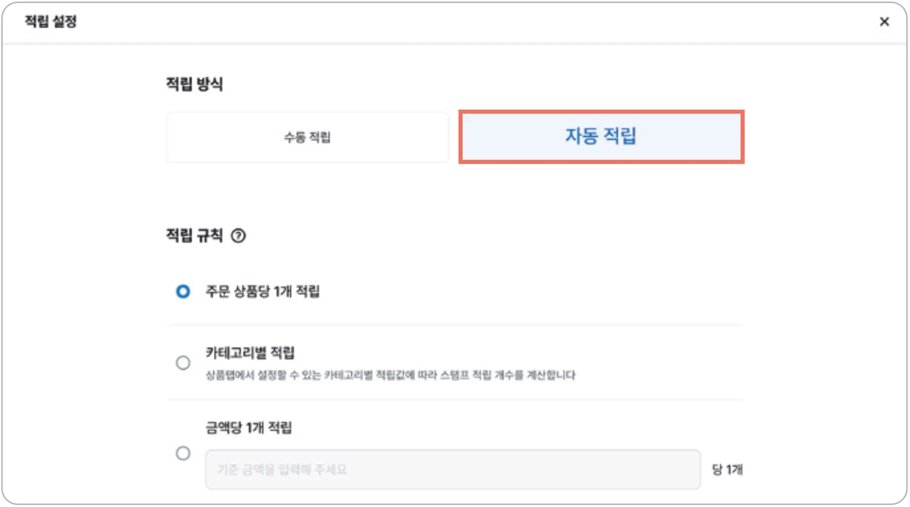 일괄 적립 : 설정한 적립률에 따라 총 결제 금액의 n%가 적립