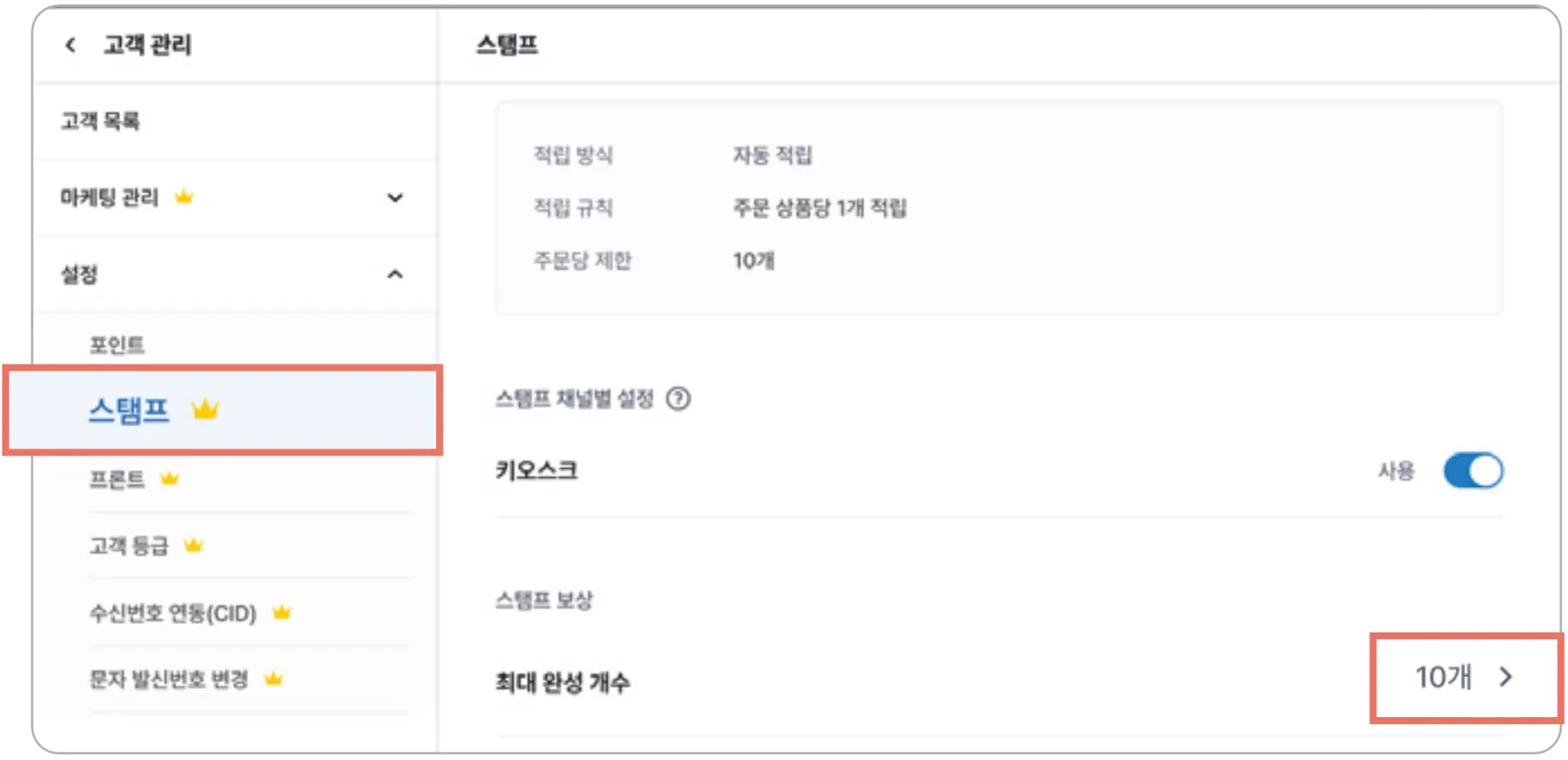 스탬프 기능은 고객 관리 프리미엄을 구독한 매장에서 사용할 수 있습니다.