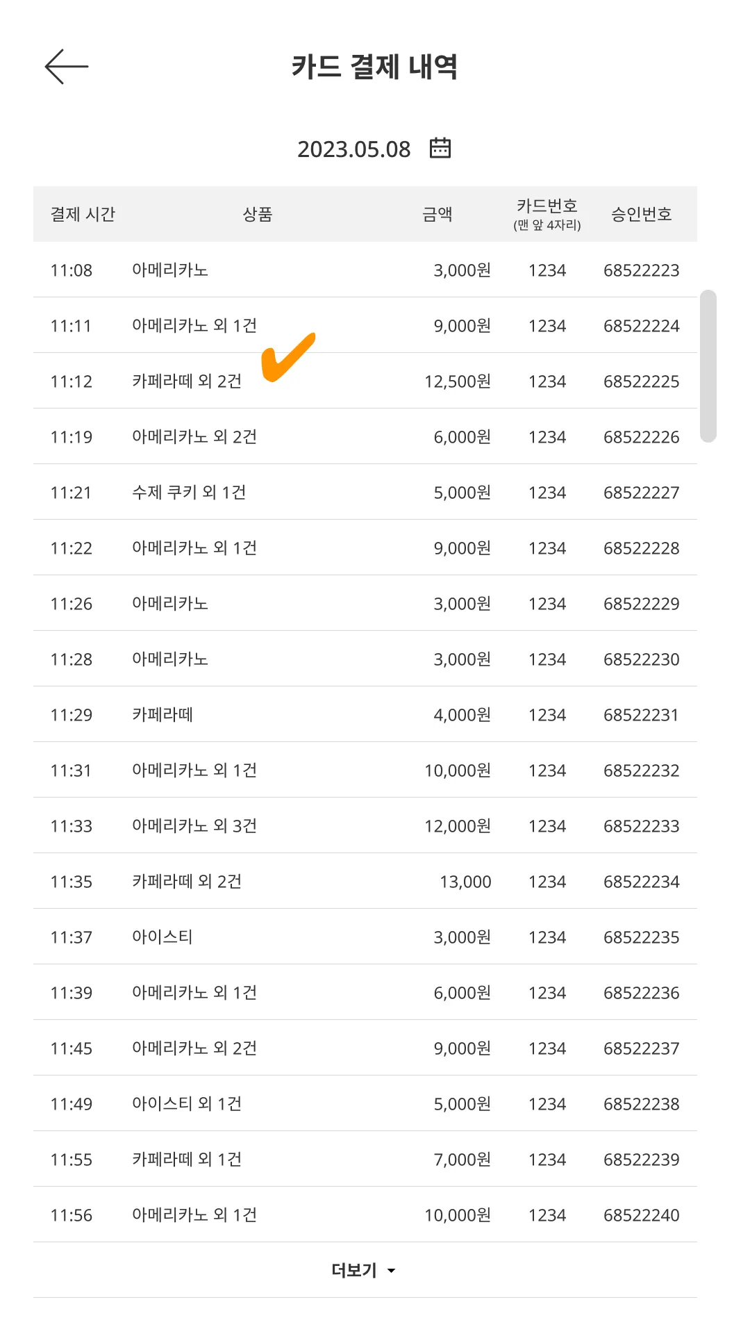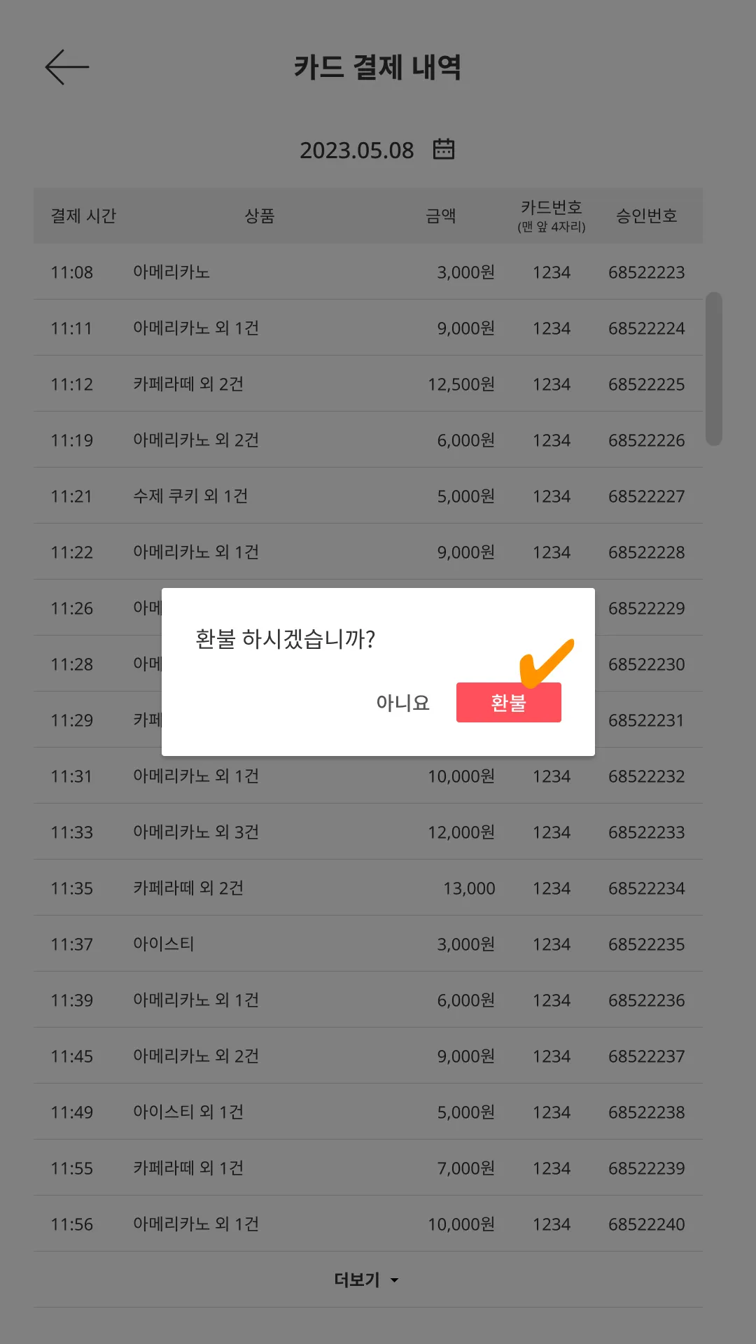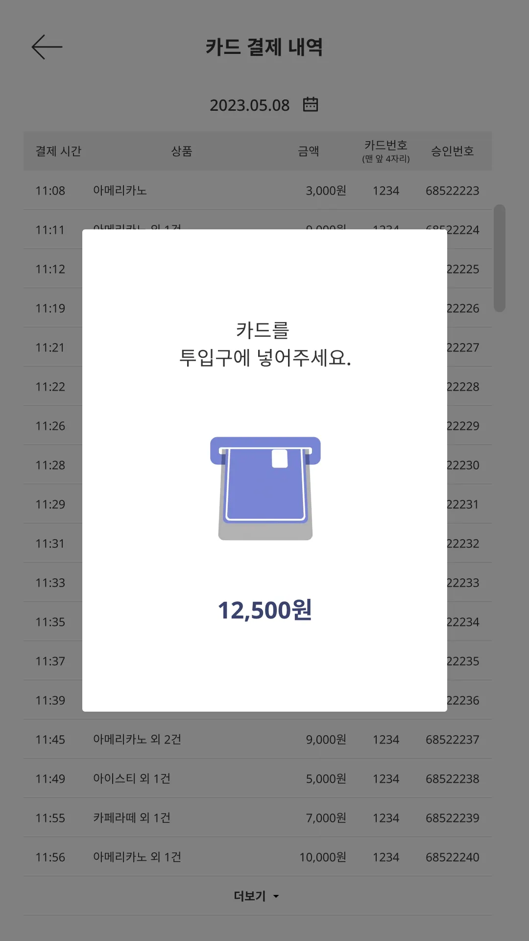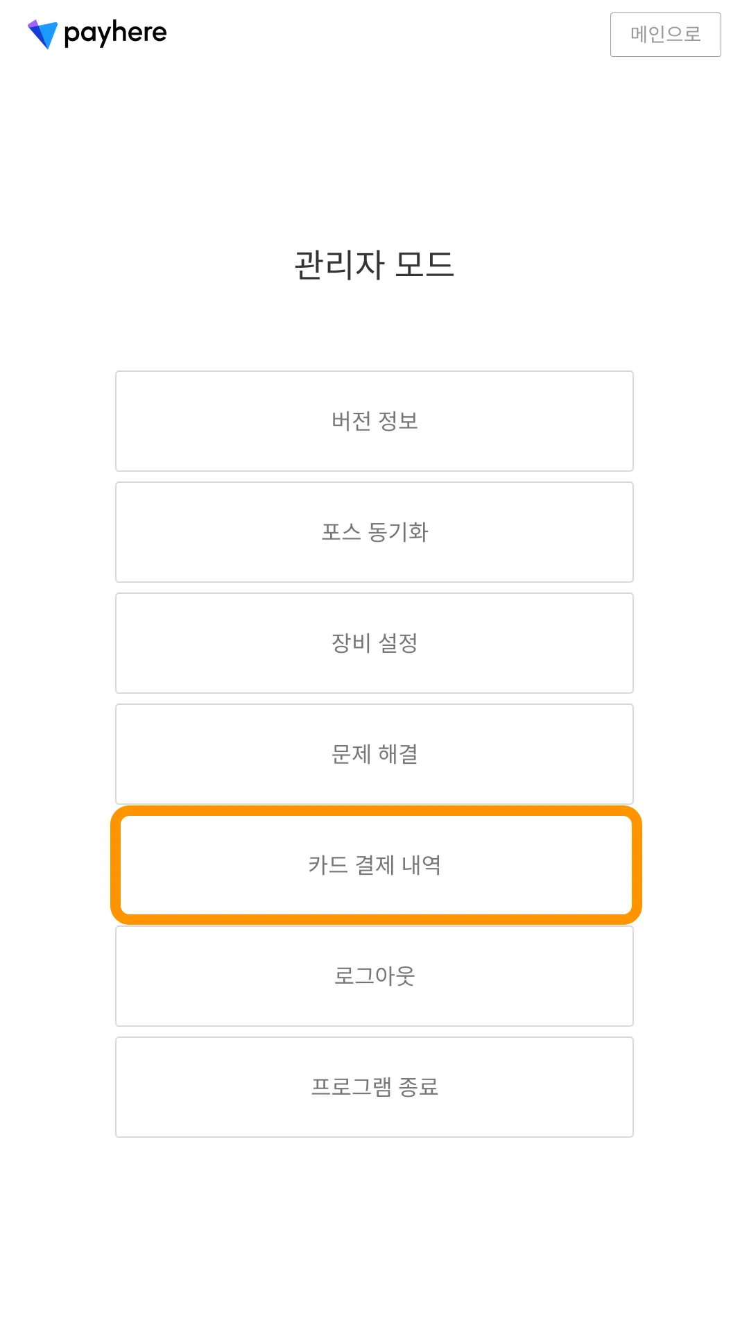 3) 관리자 모드 화면에서 [카드 결제 내역]을 선택해주세요.