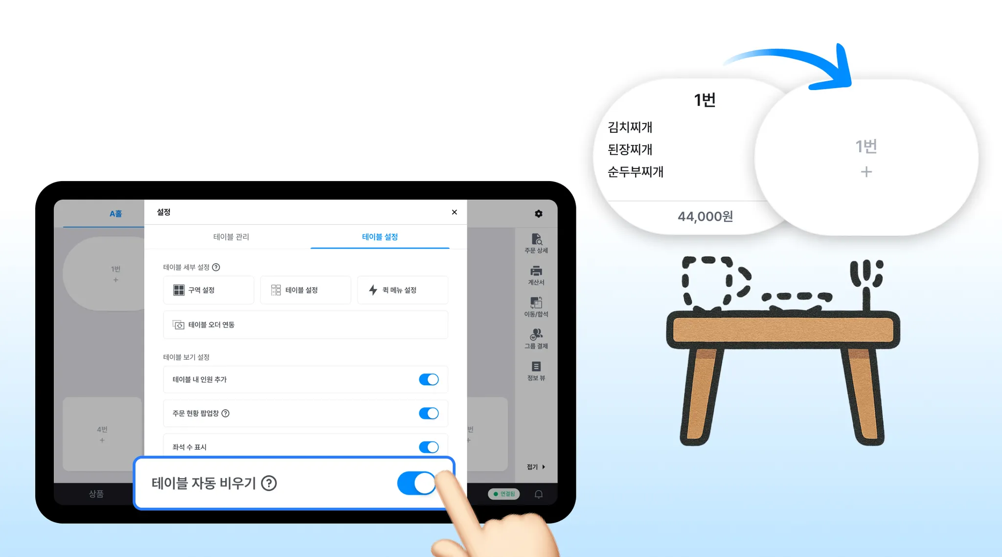 테이블, 결제 후 자동으로 비워져요