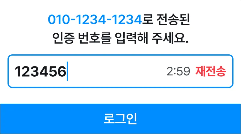 2) 전화번호와 인증 번호를 입력한 후 [로그인]을 눌러주세요.