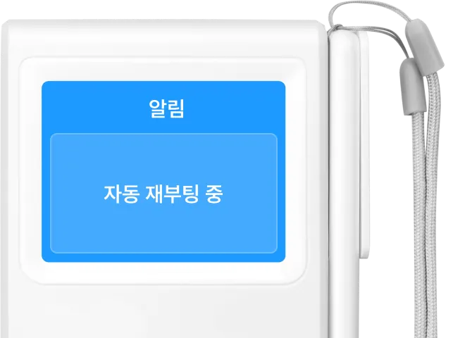 본체 뒷면 전원 포트에 전원선 연결 후, 본체 바닥면에 있는 전원 버튼을 2초 이상 꾹 눌러주세요.