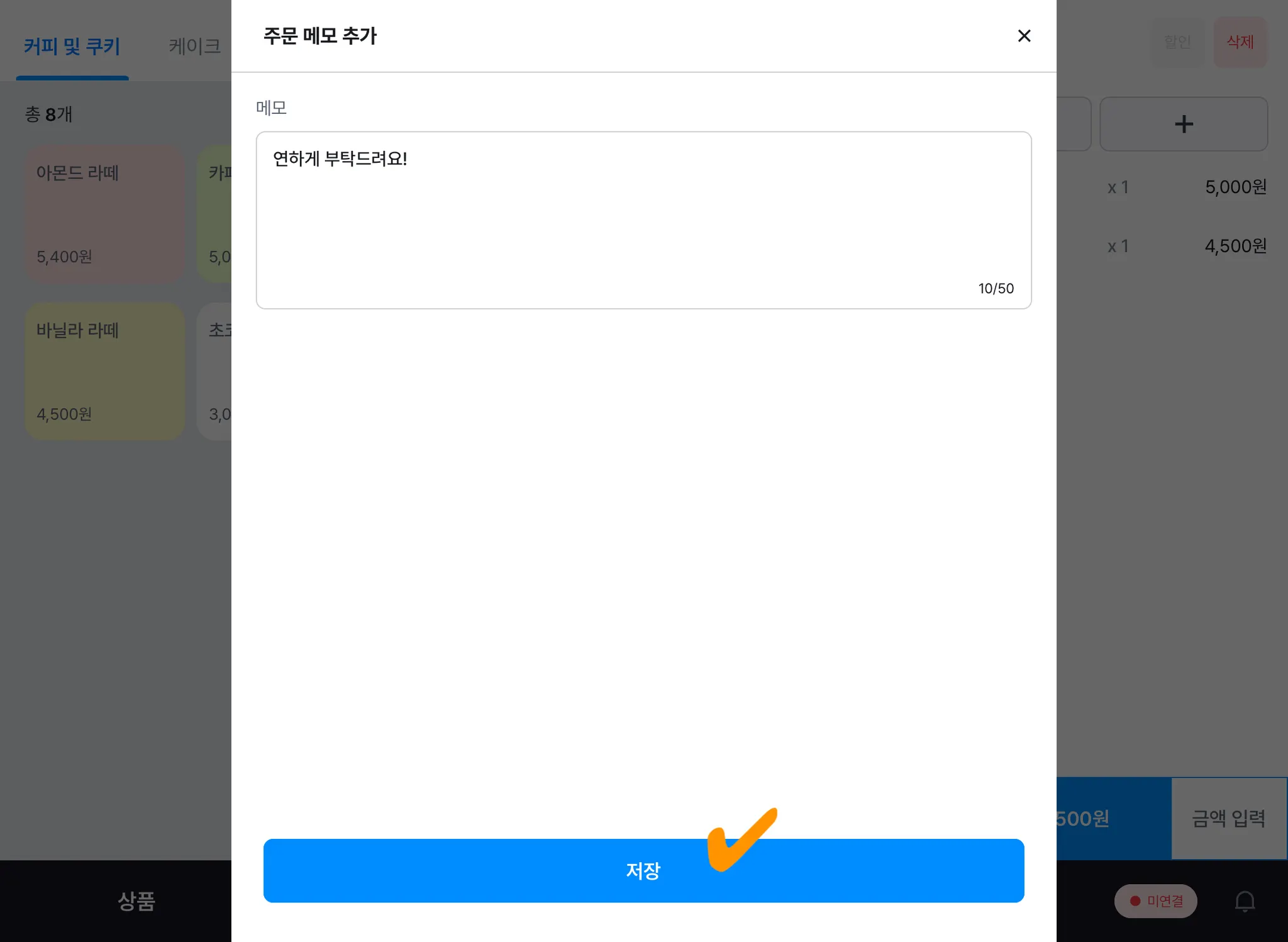 2) 주문 메모를 추가한 후 [저장] 버튼을 눌러주세요.