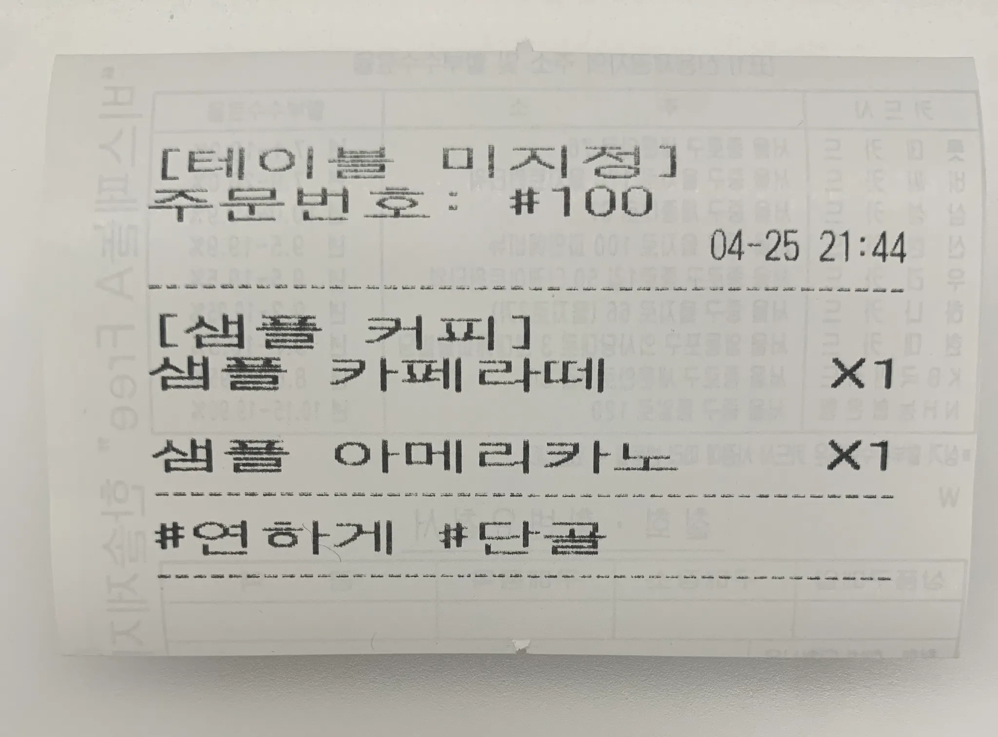 종이 주문서에도 메모가 출력됩니다.