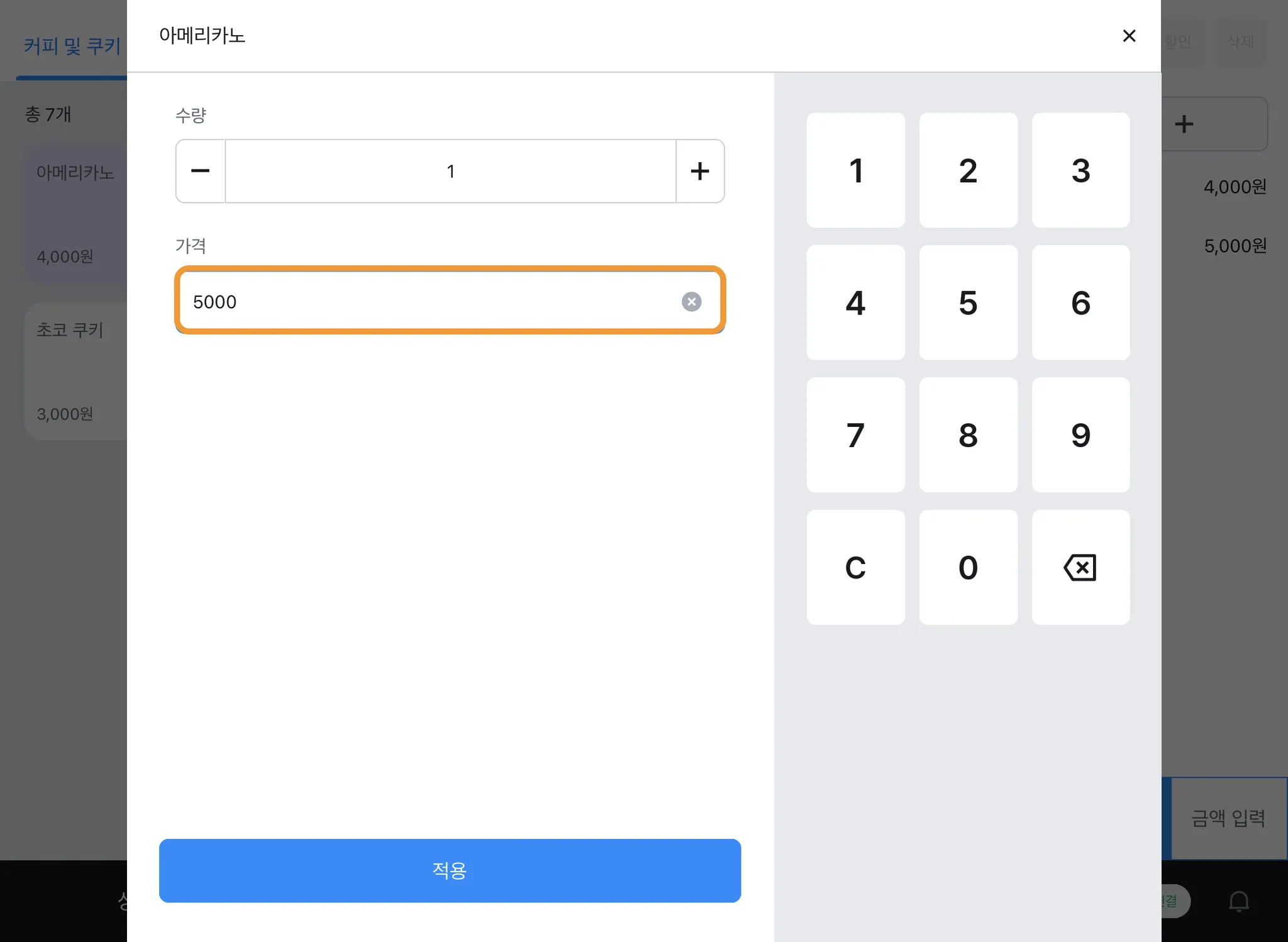 단체 주문 등의 상황에서 수량을 숫자로 입력해 변경할 수 있습니다.