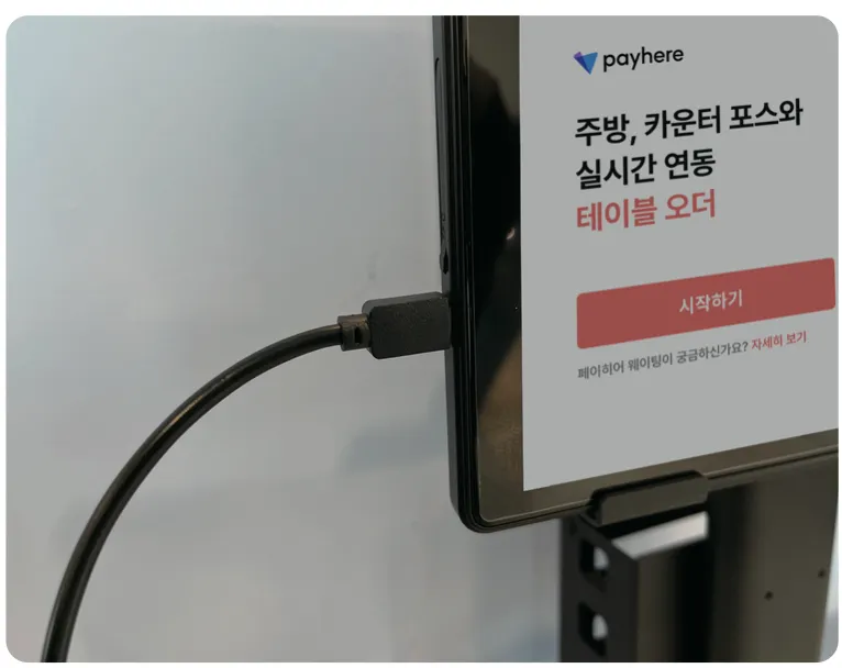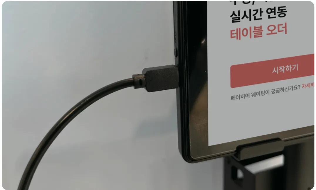 테이블 오더 태블릿은 고속 충전기 사용을 지원하고 있지 않습니다.
