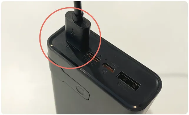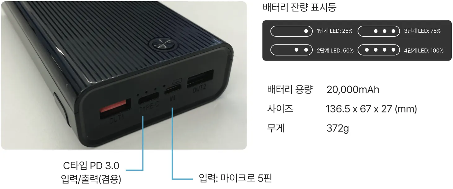 선택한 구성품에 따라 보조 배터리 또는 충전기를 연결해 주세요.