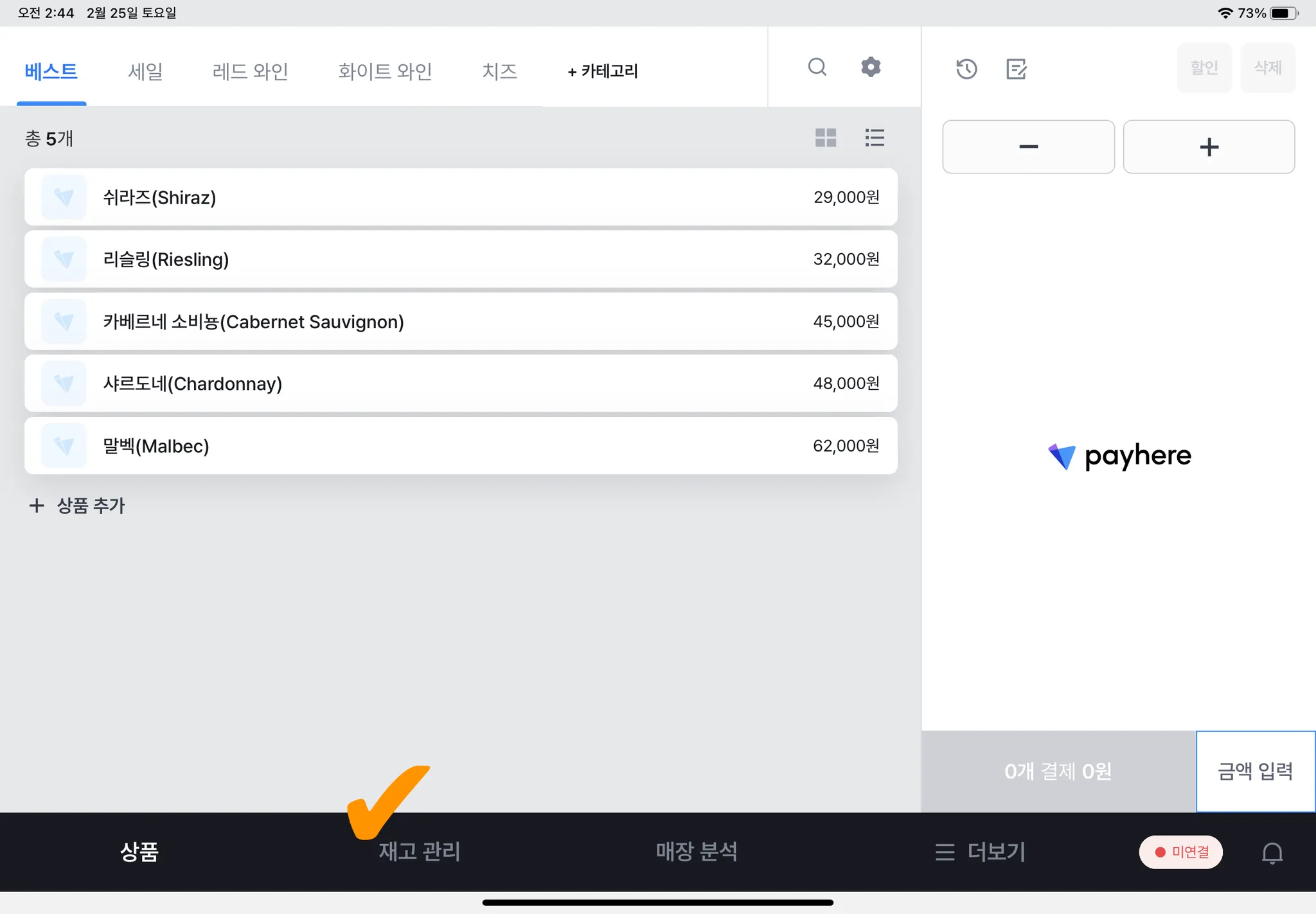 1) 하단에 있는 [재고 관리] 탭을 눌러주세요.