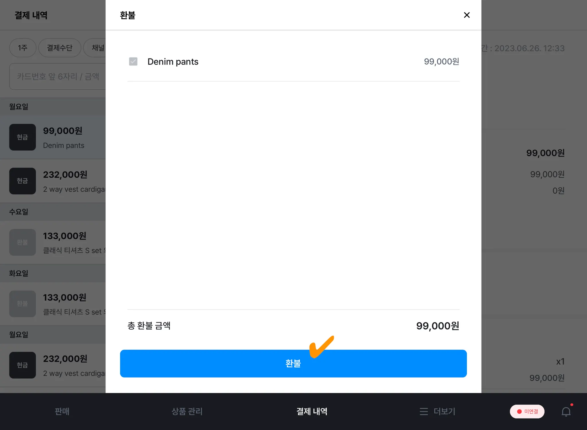2) 환불 내역을 확인하고 [환불하기] 버튼을 눌러주세요.