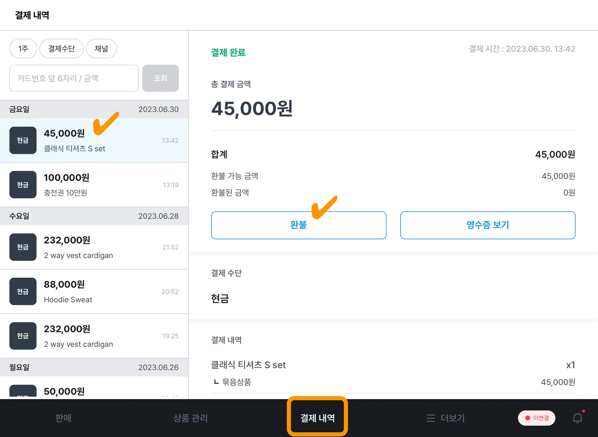 3) 현금영수증을 발급한 결제 건을 환불하려면, 발급 시 입력했던 번호를 다시 입력해야 합니다.