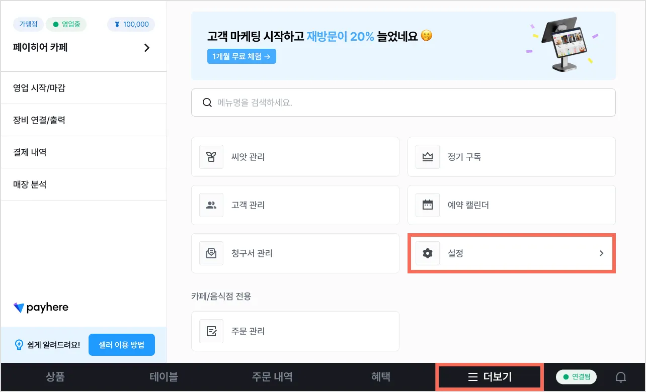 1) [더보기] 탭에서 [설정]을 눌러주세요.