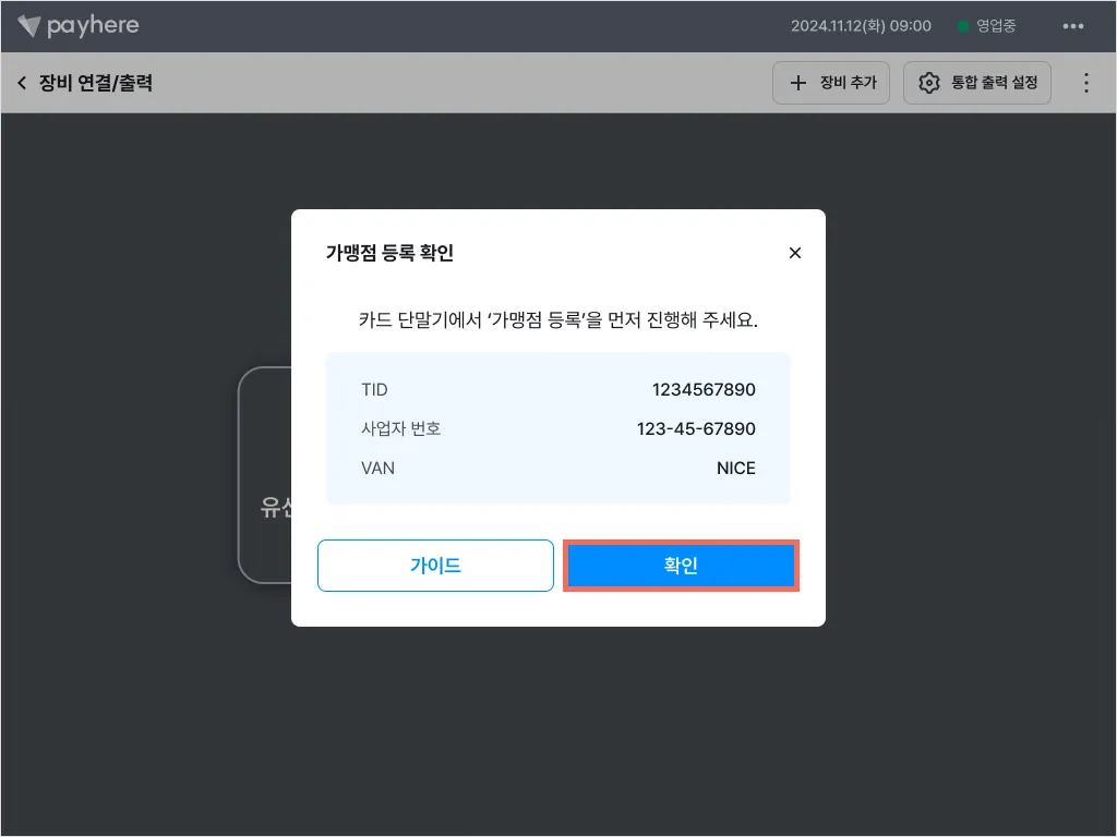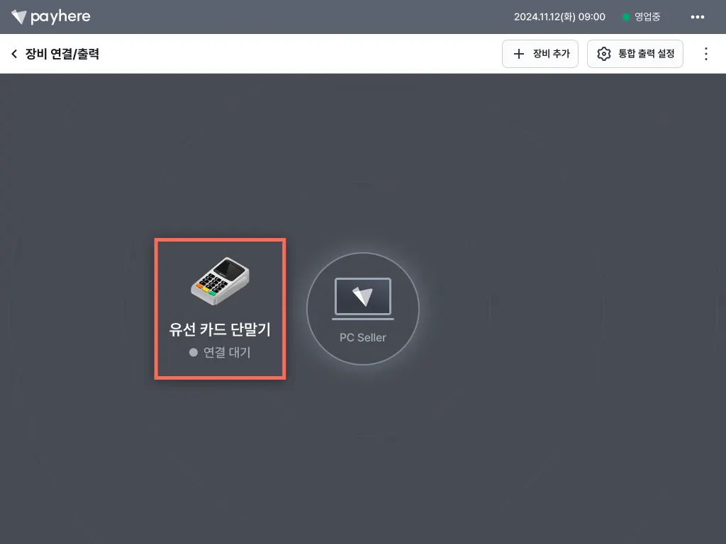 2) 연결 대기 상태인 [유선 카드 단말기]를 누른 후, [확인]을 눌러주세요.