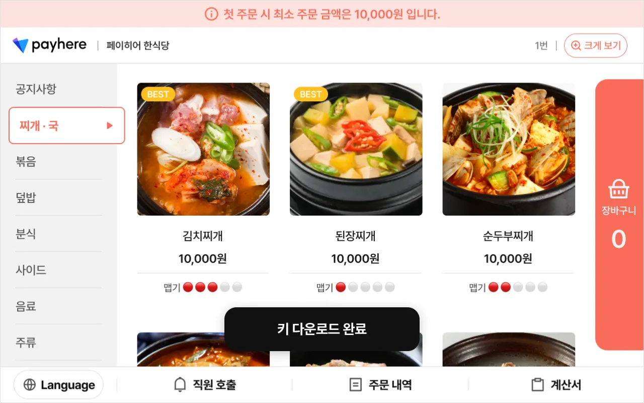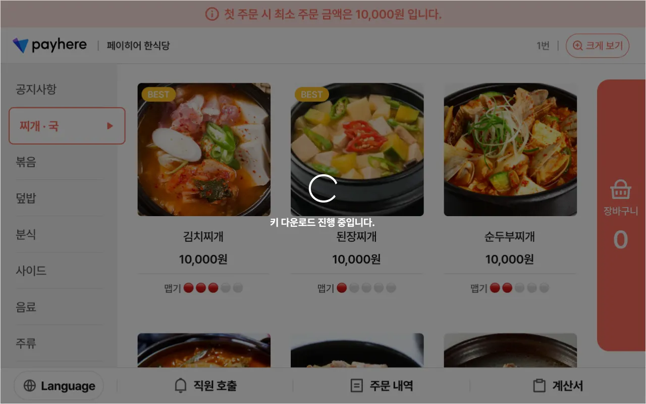 이후 테이블 오더 앱을 실행합니다.