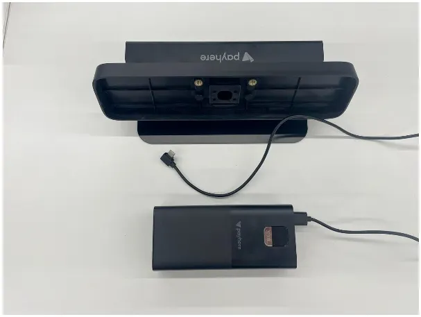 1) 충전 케이블과 보조 배터리를 준비한 후, 충전 케이블을 거치대 뒤쪽에서 앞으로 빼 연결해 주세요.