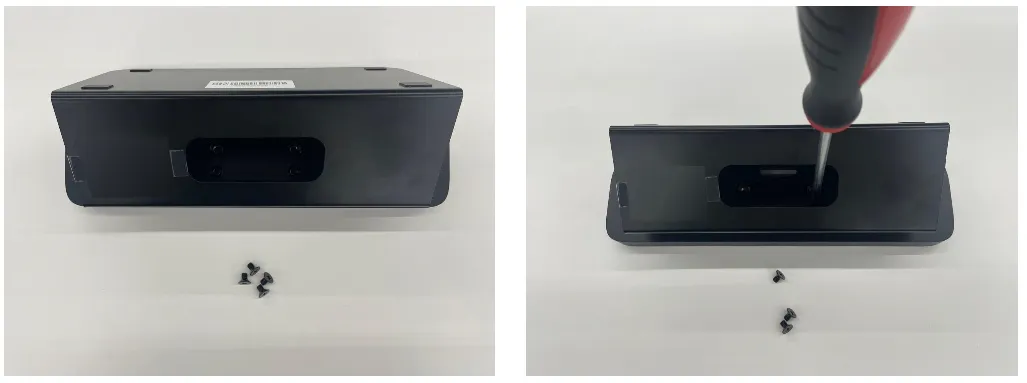 2) 거치대를 뒤로 돌려 거치대와 후면 커버를 동봉된 작은 나사로 조여 결합해 주세요.